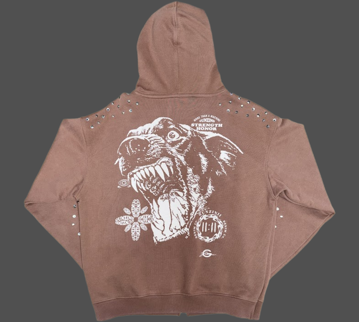 Gunzinii Studded Graphic Zip Hoodie – Brown
