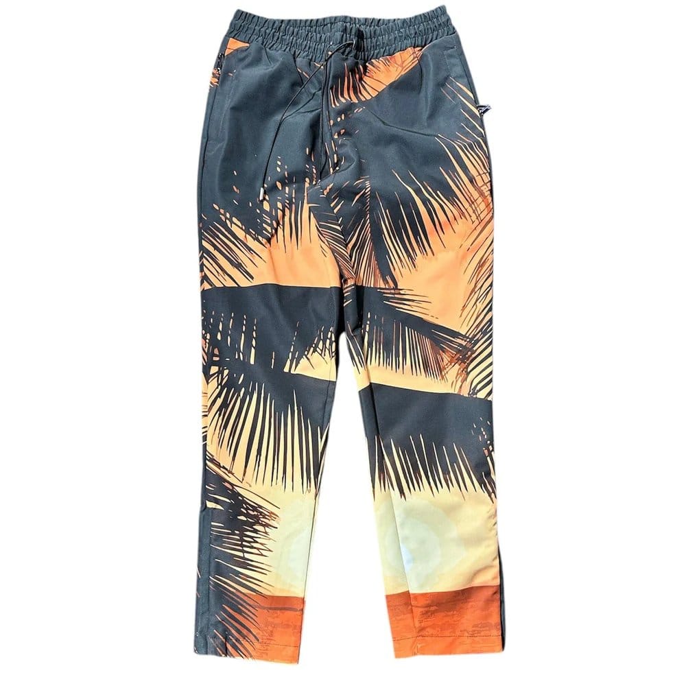 The La Palmas Sunset Windbreaker Pant completes the set with matching gradient tones and lightweight construction. Summer-ready comfort.