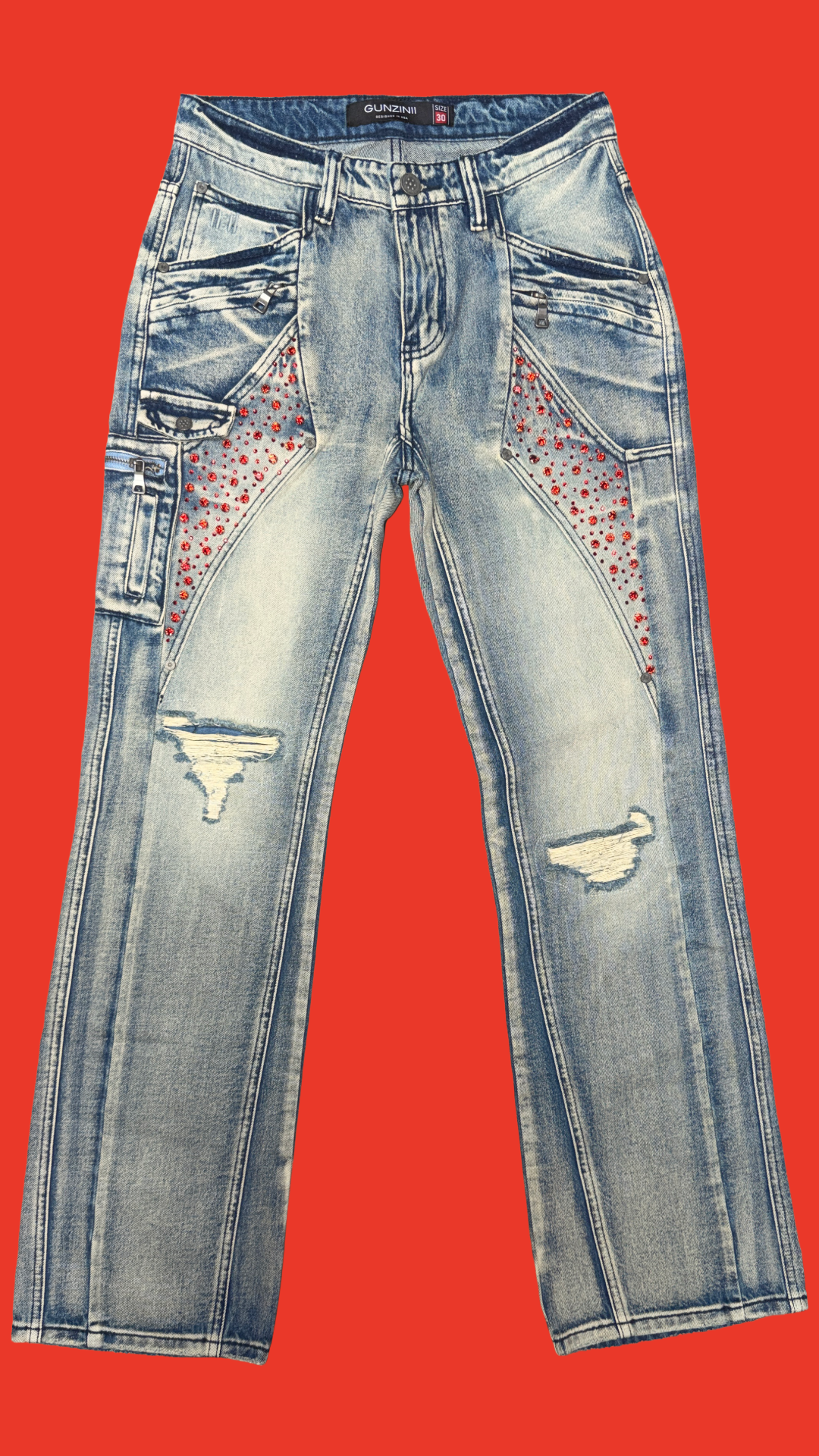 Gunzinii Ice Blue Studded Denim