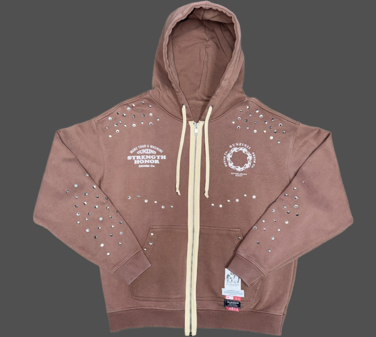 Gunzinii Studded Graphic Zip Hoodie – Brown