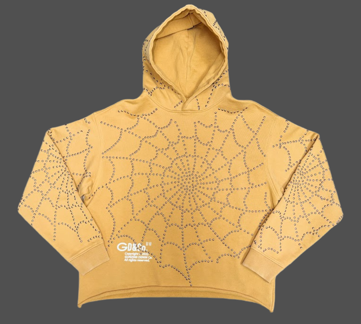 Gunzinii Rhinestone Web Hoodie – Mustard Yellow